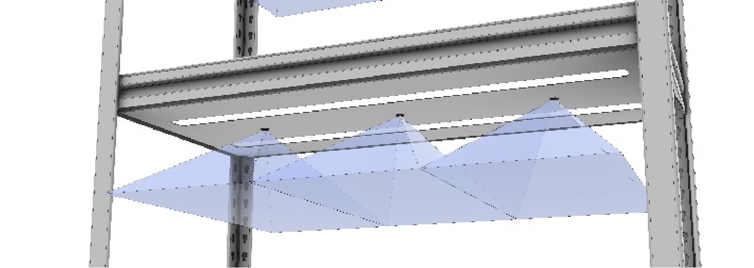 頂部視覺(jué)識(shí)別貨架可以通過(guò)貨架層板內(nèi)部安裝的攝像頭及補(bǔ)光燈,來(lái)拍照和識(shí)別下層層板上放置的貨品二維碼,通過(guò)以上設(shè)備測(cè)量得知層板上所儲(chǔ)存貨物的準(zhǔn)確庫(kù)存信息。配合工作流軟件,實(shí)現(xiàn)庫(kù)存的智能化控制。